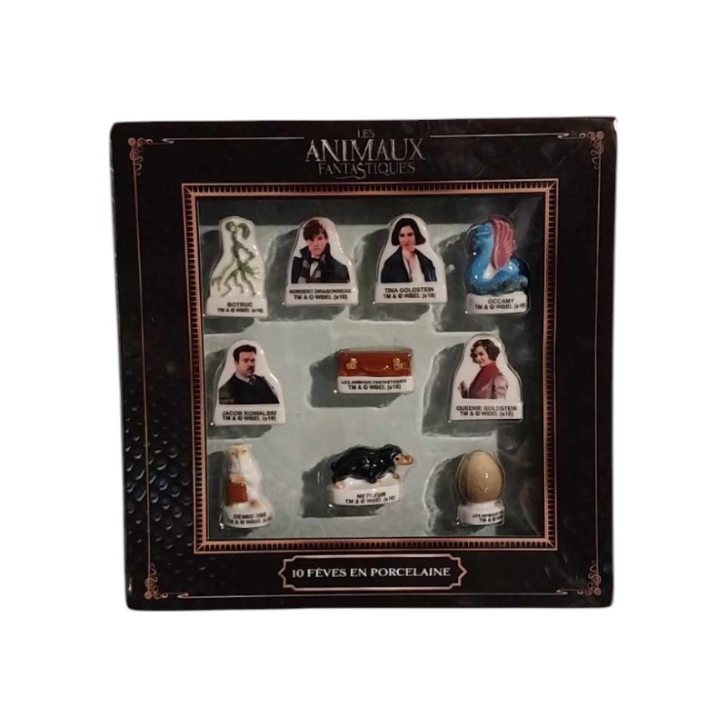Lot de 10 fèves des Animaux Fantastiques est un ensemble de fèves en porcelaine, sorti en 2019. Il représente des personnages et des créatures du film Les Animaux Fantastiques, dérivé de l’univers Harry Potter. Chaque fève mesure environ 3 cm de hauteur et est faite de porcelaine de haute qualité.