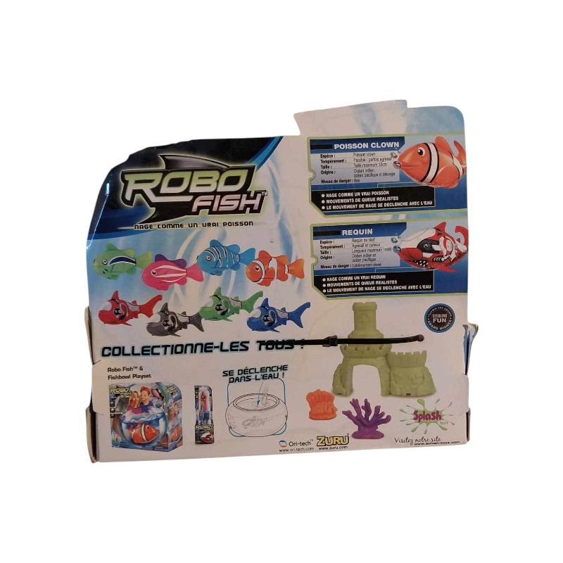 Le Robot Fish est conçu avec des détails complexes, mettant en valeur ses nageoires, ses yeux, et ses couleurs vives. Il est généralement vendu avec un support d’exposition et une carte illustrée.