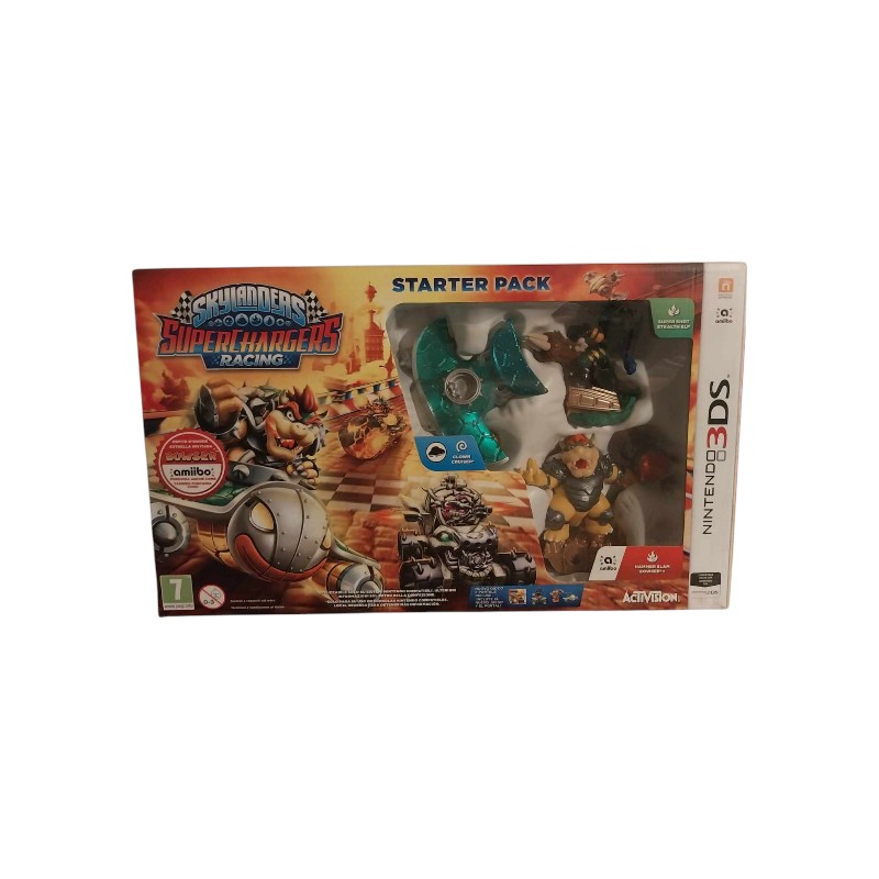 Le Starter Pack Skylanders SuperChargers 3DS est un ensemble de démarrage pour le jeu vidéo Skylanders: SuperChargers sur Nintendo 3DS. Il inclut le jeu, deux figurines Skylanders, un véhicule, un portail, et un poster. Les figurines et le véhicule sont sculptés avec des détails complexes et mesurent environ 10 cm. Le portail permet aux joueurs d’interagir avec le jeu et de contrôler les personnages.